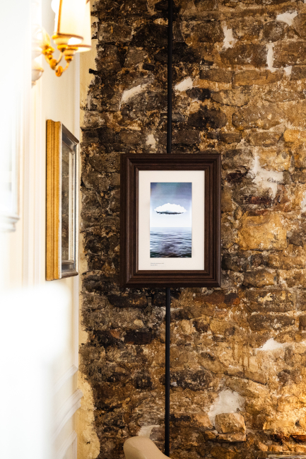 Connected to power, the frame comes to life with a discreet touch, via a refined system integrated into the lower rear section. A distinctive detail marks activation: the Deep White logo is projected onto the wall, highlighting the product’s design.